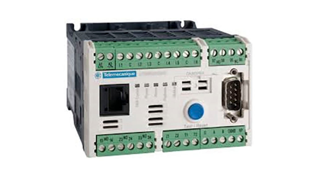 Controller motore Schneider Electric, serie TeSys T, montaggio su guida DIN, azionamenti per motori disponibili in diverse correnti e tensioni nominali, interfaccia CANopen, prestazioni tecniche elevate, affidabilità garantita, conformità a standard internazionali tra cui EN 60947-4-1, UL 508, ATEX, e altri.