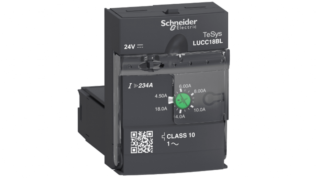 Controllore motore TeSys U Schneider Electric, tensione di alimentazione 690 V, corrente nominale 18 A, protezione per motori monofase fino a 4 kW@400V, protezione sovraccarico classe 10, cortocircuito 13 x Irmax, sovracorrente 142 x IR, perdita di fase, guasto di isolamento, compatibile con basi LUB320 e LUB380. Componente di protezione motore.
