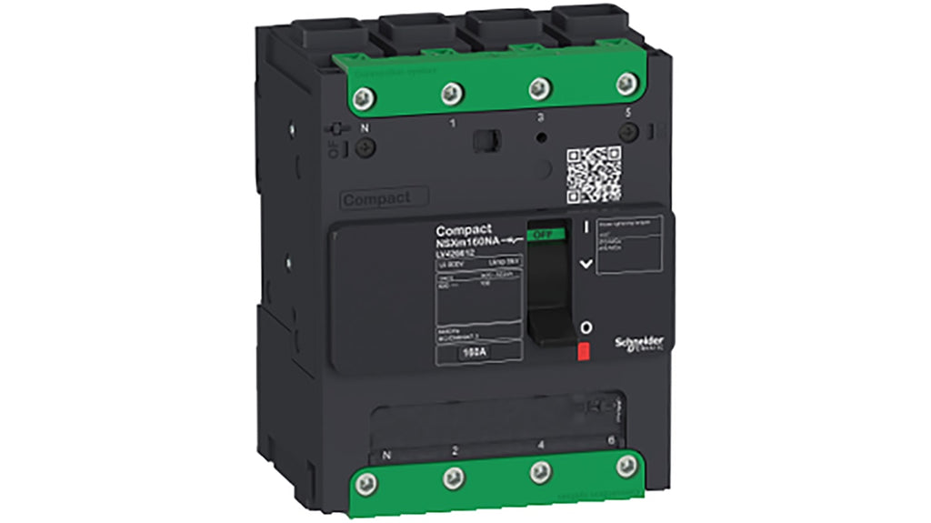 Interruttore magnetotermico scatolato, 160A, 4 poli, tensione nominale 690V, montaggio a clip, serie NSXm, compatto, attuatore di reset bistabile, lunghezza 108mm, larghezza 137mm, profondità 80mm, linguetta Everlink, capacità di cortocircuito 2.13Icm, corrente di lavoro 1.5Icw. Marchio Schneider Electric, codice costruttore LV426612.