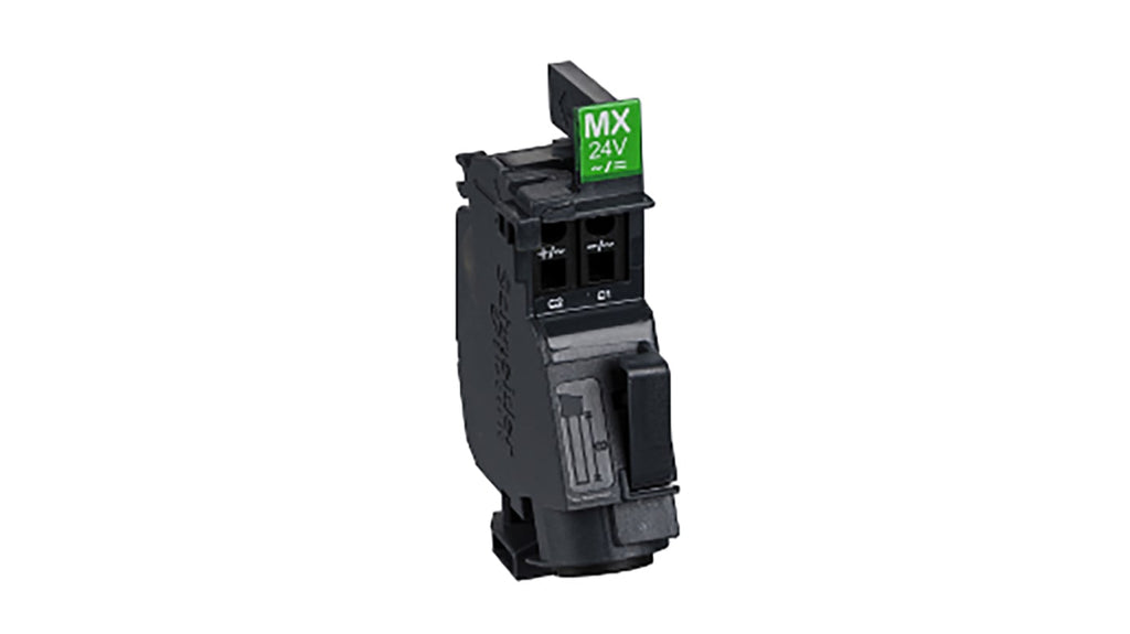Interruttore magnetotermico scatolato, tensione nominale 24V c.a. e 24V c.c., frequenza 50/60 Hz, montaggio a clip, lunghezza 8mm, scatto automatico in derivazione (molla) MX. Prodotto da Schneider Electric, codice costruttore LV426841.