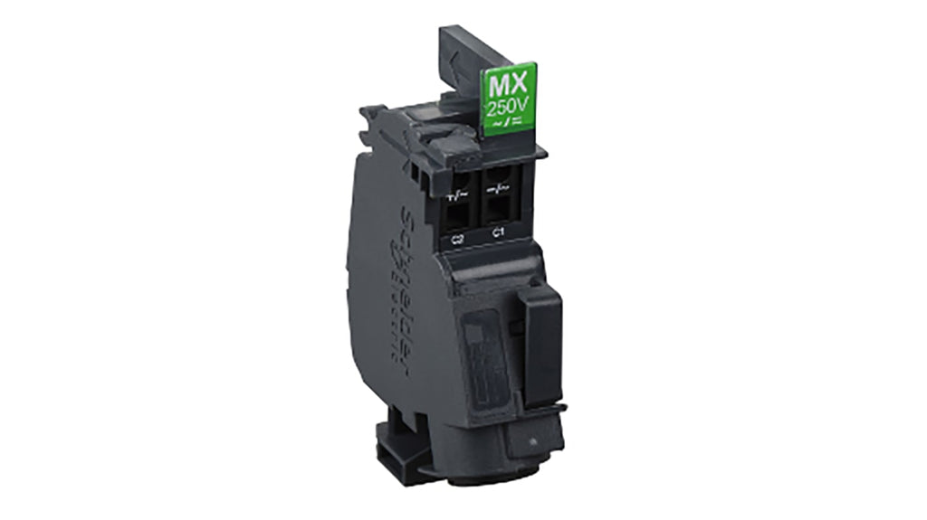 Interruttore magnetotermico scatolato, tensione nominale c.a. 277 V, 208-240 V, 220-240 V, tensione nominale c.c. 250 V, tipo di montaggio a clip, scatto automatico in derivazione (molla), compatibile con frequenze 60 Hz e 50 Hz, lunghezza 8 mm. Marchio Schneider Electric, codice costruttore LV426844.