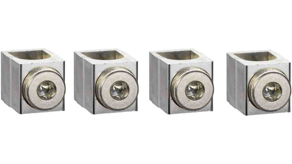 Connettore cavo Schneider Electric per 1 cavo da 25 mm2 a 95 mm2, in alluminio, compatibile con Compact NSX 100/160/250 e Easy PACT CVS 100/160/250, innesto diretto sui terminali o fissaggio tramite clip, venduto in set di 4 parti, privo di metalli pesanti e mercurio.