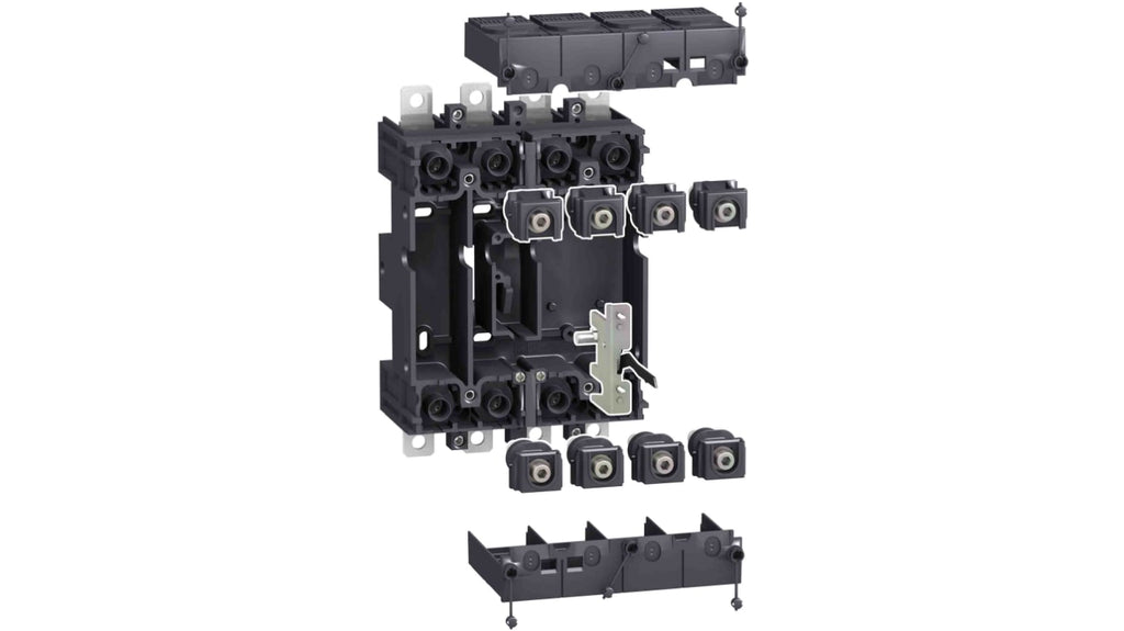 Base a innesto per interruttori automatici compatti NSX 100/160/250 a 4 poli, compatibile con kit a innesto completo, installazione e rimozione rapida senza scollegare il circuito di alimentazione, modalità di montaggio a innesto, priva di mercurio. Accessorio per gamma Compact NSX.