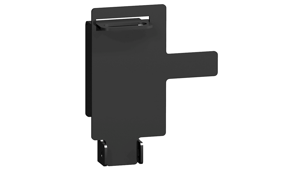 Sistema di bloccaggio con lucchetto per dispositivi fissi Compact NSX 400/630, consente bloccaggio in posizione aperta o chiusa, compatibile con fino a 3 lucchetti (diametro arco da 5mm a 8mm, non inclusi), garantisce isolamento in conformità alla norma IEC 61947-2, privo di metalli pesanti e mercurio.