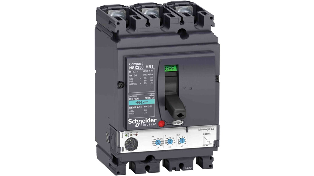 Interruttore magnetotermico scatolato, 3 poli, 50 A, 690 V, potere di interruzione 75 kA, tipo di montaggio fisso, grado di protezione IP40, privo di mercurio, modello NSX100HB1, Micro Logic 2,2 M, serie LV4, tipo MCCB. Marchio Schneider Electric, codice costruttore LV433305.