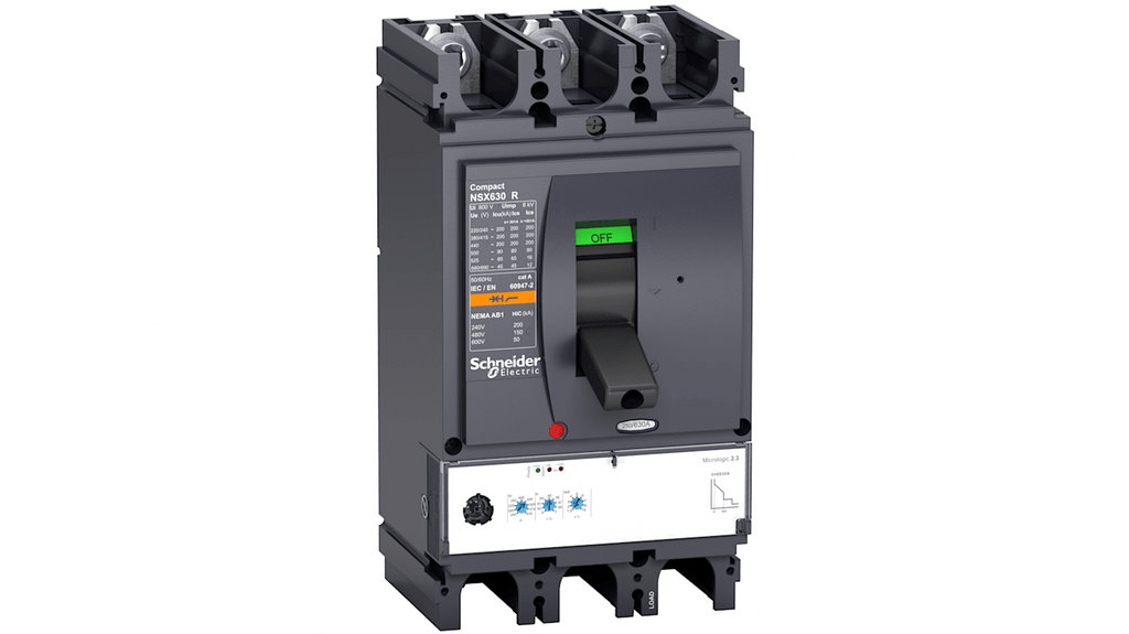 Interruttore automatico fisso 3 poli, 400A, progettato per ottimizzare spazio e capacità di interruzione, capacità di interruzione 200kA rms a 415VAC, 45kA rms a 690VAC, tensione di esercizio 690VAC, unità di attivazione elettronica Micrologic 2.3, protezioni regolabili a lungo termine e di breve durata, grado di protezione 400A, montaggio fisso, compatto, serie LV43.