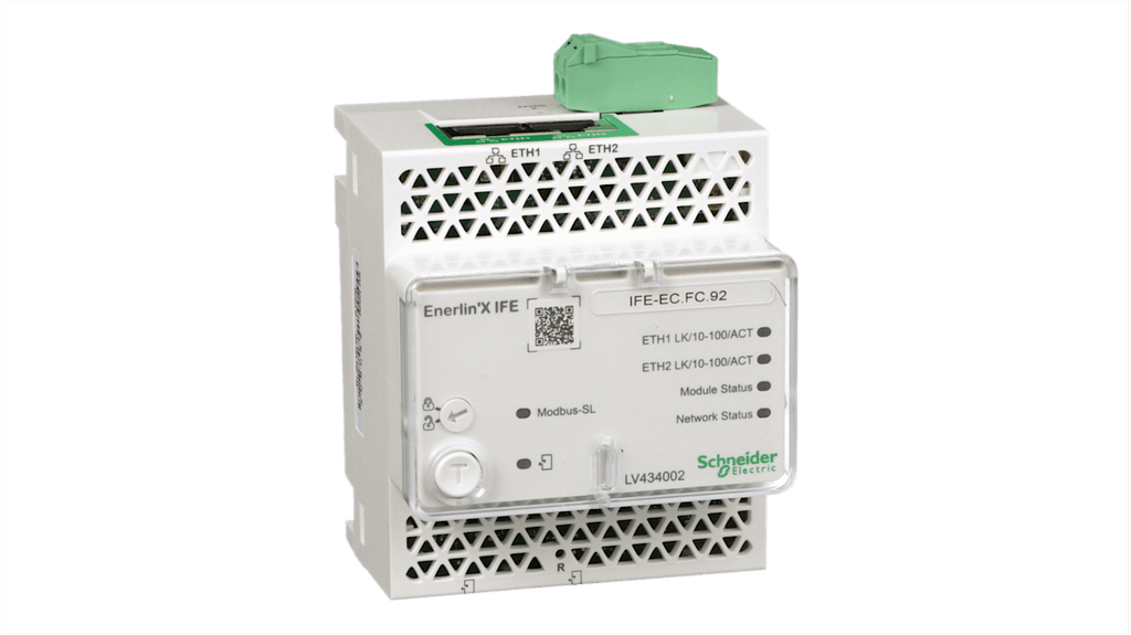Interruttore magnetotermico scatolato, codice LV434002, marchio Schneider Electric. Modulo di interfaccia Ethernet per quadri di controllo, parte del sistema EnerlinX. Accesso Ethernet a interruttori Masterpact, Compact o PowerPact, gateway Modbus integrato. Flusso dati 10/100 Mbps, terminale con morsetto a vite 24VDC, connettori femmina 2xRJ45. Temperatura di conservazione da -40 a 85 gradi Celsius, funzionamento da -20 a 70 gradi Celsius. Serie LV43.