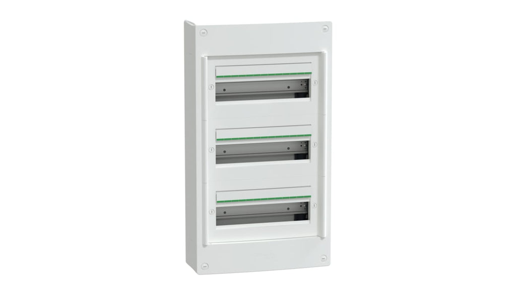 Contenitore di distribuzione modulare a montaggio superficiale, 3 fori, colore bianco, materiale plastico, senza mercurio, sostenibile, premio verde. Marca: Schneider Electric, serie LVSX. Marcatura contenitore: nessuna.