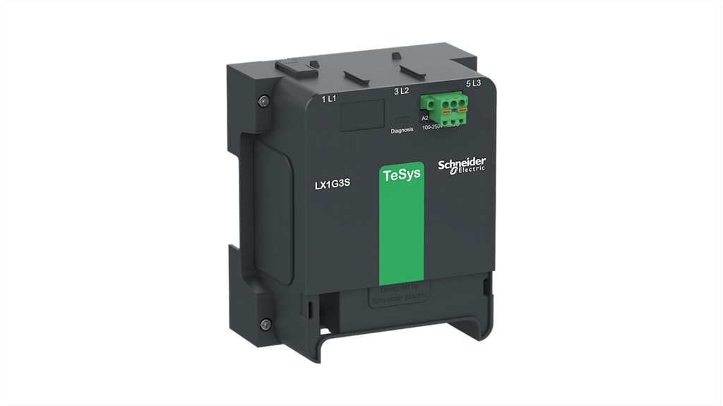 Modulo di controllo per contattore TeSys Giga. Bobina a basso consumo energetico, ampia gamma di tensione, collegamento tramite terminale a molla. Operatività AC-3 fino a 600 cicli/ora, temperatura ambiente fino a 60 gradi. Connettori per circuito di controllo A1, A2, stato dei poli e segnalazione diagnostica. Versione standard a 3 poli.