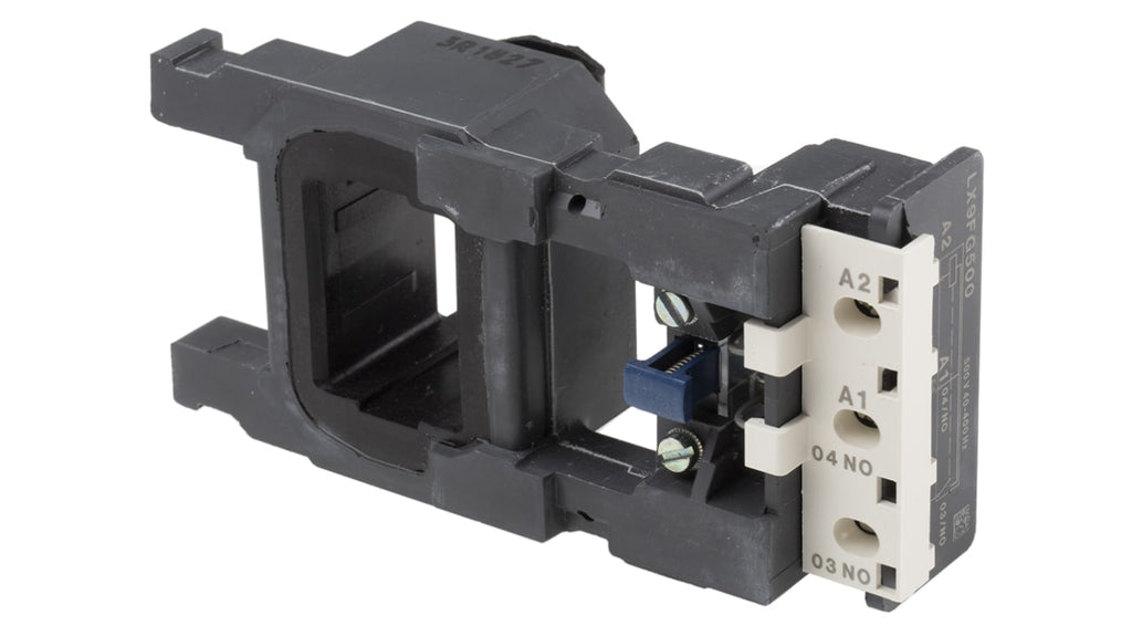 Bobina contattore per uso con LC1F185 e LC1F225, tipo accessori TeSys F, tensione nominale 500 V c.a., frequenza 40-400 Hz, progettata per basso consumo energetico, serie LX9F.