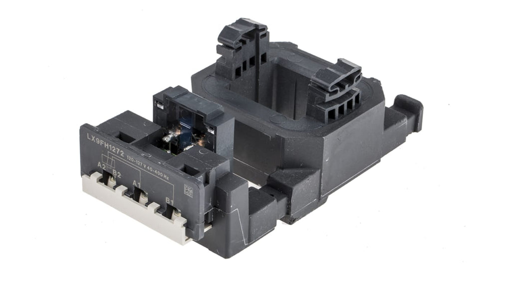 Bobina contattore per uso con LC1F265 e LC1F330, tipo accessori TeSys F, tensione nominale 127 V c.a., frequenza 40-400 Hz, a basso consumo energetico, codice costruttore LX9FH1272, marchio Schneider Electric.