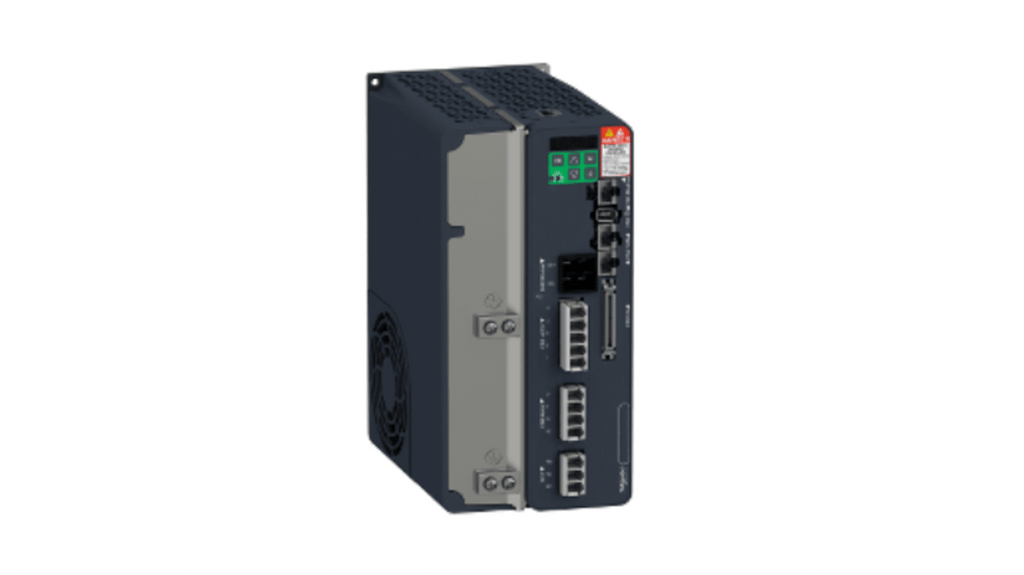 Servocomando Schneider Electric, 1 fase, potenza nominale 4,5 kW, tensione di alimentazione 240 V, corrente nominale 22,9 A, feedback encoder, I/O digitali e analogici, grado di protezione IP20, temperatura operativa da 0 a 55 gradi Celsius, funzione di disattivazione di coppia sicura integrata, compatibile con servomotori BCH2. Codice costruttore LXM28EU45M3X.