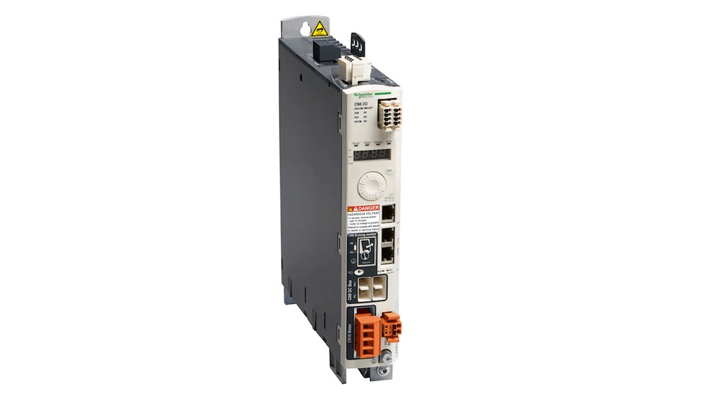 Servocomando Schneider Electric, feedback encoder, 1 fase, potenza nominale 0,3 kW e 0,5 kW, tensione di alimentazione 115 a 230 V, corrente nominale 3 A, grado di protezione IP20, temperatura operativa da 0 a 50 gradi Celsius, dotato di I/O digitali e analogici, interfaccia bus di campo CAN aperto/CANmotion, funzione di disattivazione di coppia sicura integrata. Codice costruttore LXM32AU90M2.