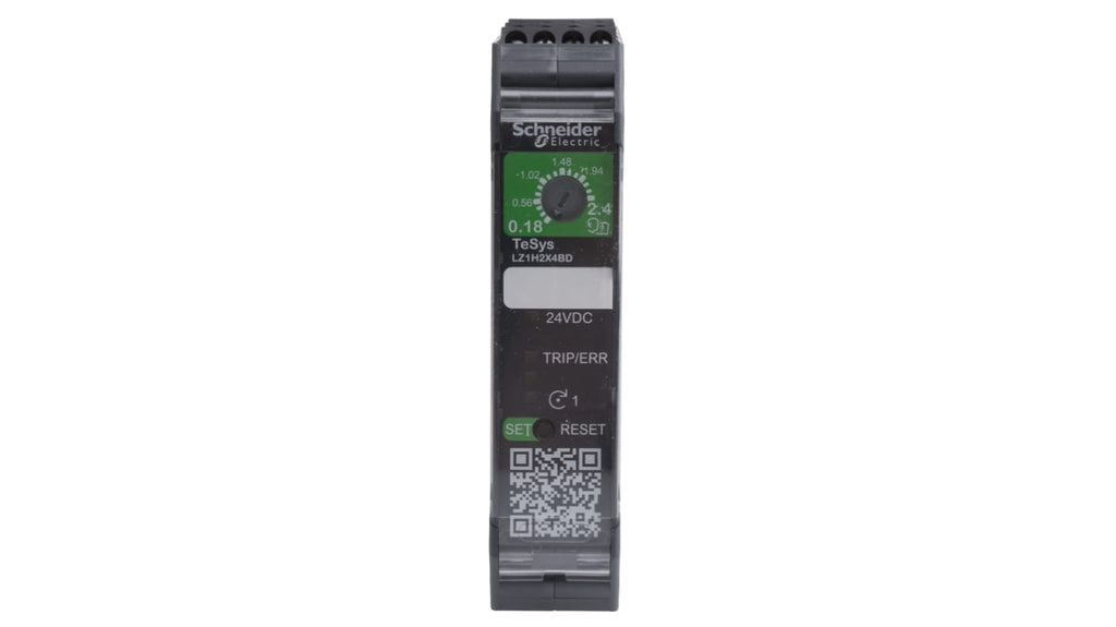Starter motore avanzato, potenza nominale 1,1 kW, serie LZ1H, montaggio su guida DIN, grado di protezione IP20, morsetti a vite o terminali a molla disponibili, reset manuale, elettrico o automatico, efficienza energetica, protezione contro sovraccarichi, conforme a norme ATEX, CE, cULus, IEC 60947-4-2, UL 60947-4-1. Marchio Schneider Electric. Codice costruttore LZ1H2X4BD.