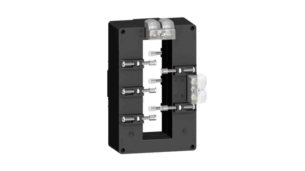 Trasformatore di corrente tropicalizzato Schneider Electric, ingresso 3000A, uscita 5A, rapporto 3000:5. Classe di precisione 0,5 a 6V c.a., classe 1 a 10V c.a. Montaggio su guida DIN, protezione IP20, classe di isolamento B. Dimensioni 160mm x 99mm x 78.4mm, peso 0,511kg. Temperatura operativa da -25°C a +60°C. Conforme a VDE 0414 e IEC 61869-2. Green Premium.