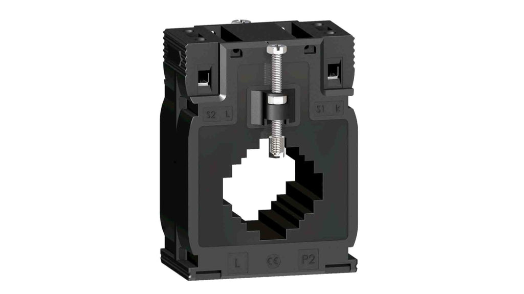 Trasformatore di corrente tropicalizzato, ingresso 800A, uscita 5A, rapporto 800:5, montaggio su guida DIN, protezione IP20, classe di precisione 0,5 a 3V c.a., classe 1 a 5V c.a., classe di isolamento B, dimensioni 95mm x 70mm x 65mm, foro 32mm, peso 0,511 kg, temperatura operativa da -25°C a +60°C, conforme a VDE 0414 e IEC 61869-2, prodotto Green Premium.