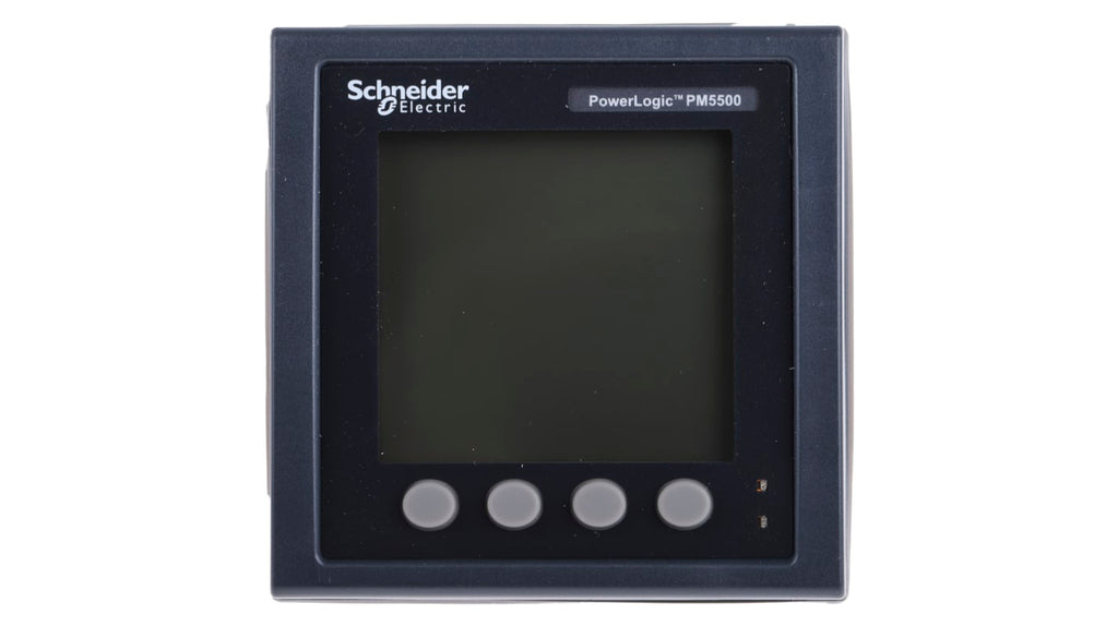 Misuratore di potenza digitale Schneider Electric, trifase, serie PM5000, display LCD, dimensioni 96 x 96 mm, precisione di misurazione fino a 0,1% per tensione, supporta comunicazione Modbus, intervallo di misurazione 20-400 V ac, temperatura operativa da -25 a +70 gradi Celsius, approvazioni CE, montaggio senza utensili, adatto per monitoraggio e gestione dei costi energetici.