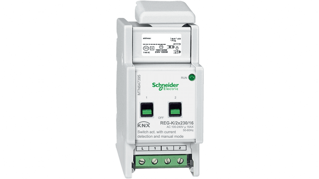 Contatore di energia Schneider Electric, KNX, codice MTN647395. Modalità di funzionamento manuale, rilevamento della corrente, montaggio su guida DIN, grado di protezione IP20. Ampia gamma di tensione e corrente nominale, compatibile con diversi carichi. Prodotto Green Premium, conforme alla normativa RoHS. Serie KNX, tipo di misurazione contatore di energia. Colore grigio chiaro.