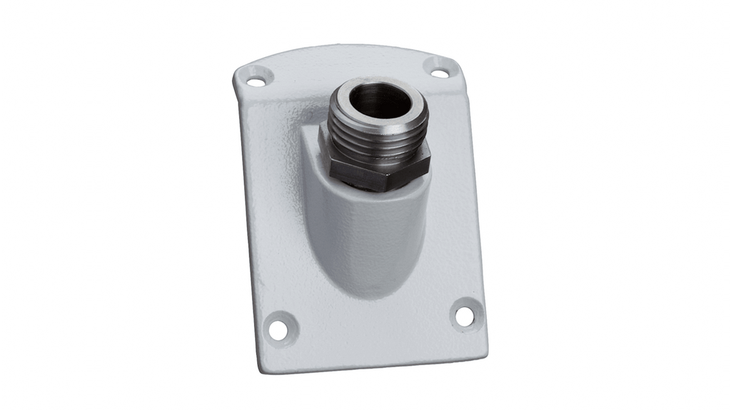 Adattatore spaziale per segnalatore luminoso, compatibile con tubo quadrato da 50 mm, realizzato in alluminio, modalità di fissaggio su staffe fisse, conforme a normative proattive, tossico, privo di metalli pesanti e mercurio. Compatibile con la gamma Spacial S3CM.
