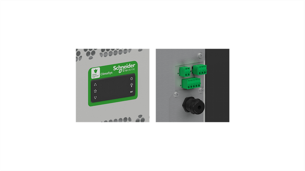Controller Schneider Electric ClimaSys, tensione di alimentazione 230 V, dimensioni 100 x 35 x 70 mm, progettato per applicazioni di controllo ambientale. Tipo di controllo: Controller, serie ClimaSys. Codice costruttore NSYCUSP010DG.