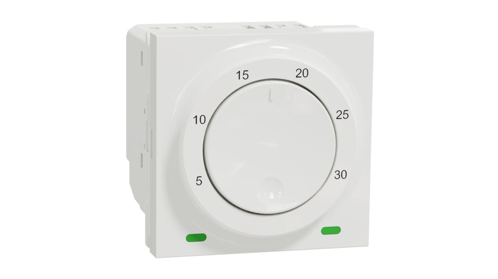 Termostato Schneider Electric, temperatura massima 30 gradi Celsius, temperatura minima 5 gradi Celsius, configurazione interruttore 1CO, montaggio a vite. Codice costruttore NU350118.