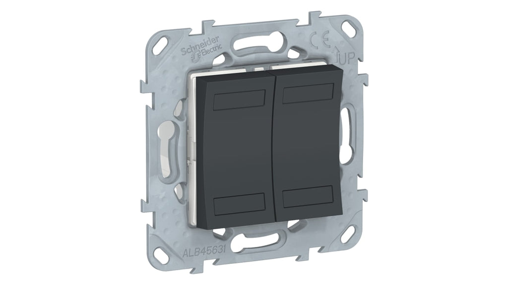 Pulsante Schneider Electric, montaggio a pannello, colore nero, illuminato con LED blu, grado di protezione IP20, resistente agli agenti chimici, senza mercurio, tecnologia dell'unità di scatto magnetica termica, progettato per applicazioni di distribuzione. Serie New Unica. Codice costruttore NU553154.