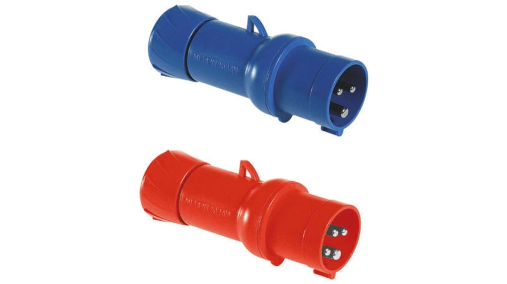 Connettore di alimentazione industriale maschio, 3P + E, corrente nominale 32A, tensione nominale 415 V, montaggio su cavo, innesto rapido senza spelamento dei fili, fermacavo autocentrante con serracavo, grado di protezione IP44, colore rosso, compatibile con cavi da 2.5 a 6 mm², serie PratiKa.