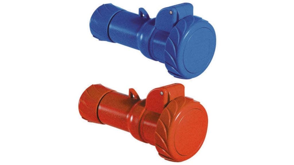 Connettore di alimentazione industriale femmina, 3P + E, corrente nominale 16A, tensione nominale 415 V, montaggio su cavo, tipo di protezione IP67, corpo con sistema di apertura e chiusura rapido, fermacavo autocentrante con serracavo, colore rosso, serie PratiKa, ad innesto senza spelamento dei fili, per applicazioni industriali.