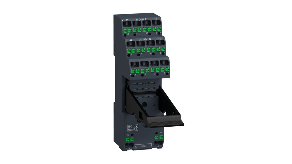 Zoccolo per relè a innesto, connettore femmina con morsetto, terminali di contatto separati, tensione 250V, progettato per utilizzo con relè, serie RXZ, montaggio su guida DIN, privo di metalli pesanti tossici e mercurio.