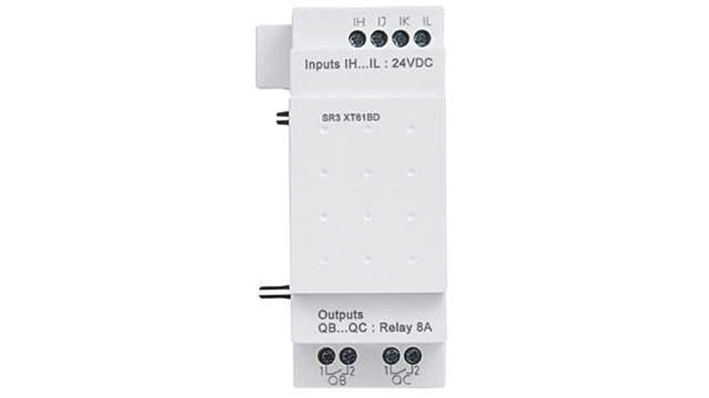Modulo di espansione I/O per relè logico Zelio Schneider Electric, compatibile con la serie SR3B. Include 4 ingressi discreti e 2 uscite a relè. Tensione di alimentazione 24 V c.a. Certificazioni UL e CSA. Tipo accessori: modulo di espansione 6 I/O. Progettato per uso con Zelio SR3.