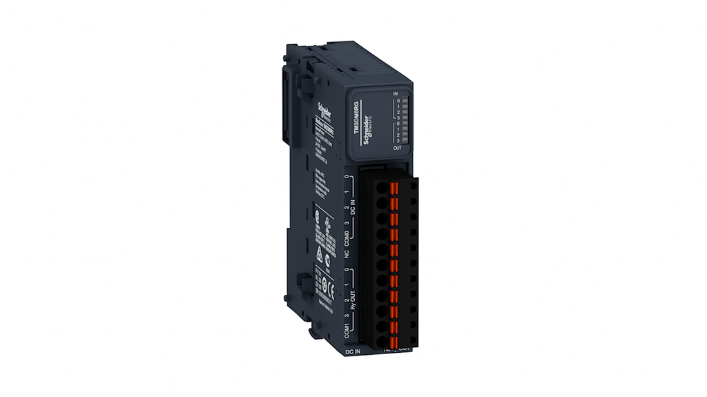 Modulo ingresso digitale per PLC Modicon TM3, serie TM3D, codice TM3DM8RG, 8 ingressi discreti, alimentazione 24 V c.c., distanza massima cavo 30 m, morsettiera a molla per collegamento, temperatura operativa -10 a 35 gradi Celsius, grado di protezione IP20, progettato per controller logici Modicon M221, M241 e M251.