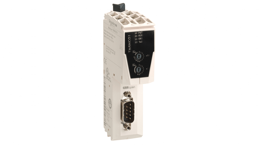 Modulo di comunicazione per Controller logico e controller di movimento, Schneider Electric. Assorbimento di corrente 300 mA, dissipazione di potenza 1,5 W, colore bianco. Tipo accessori: Modulo di comunicazione CANopen, compatibile con Modicon TM5. Progettato per macchine complesse, flessibile e scalabile.