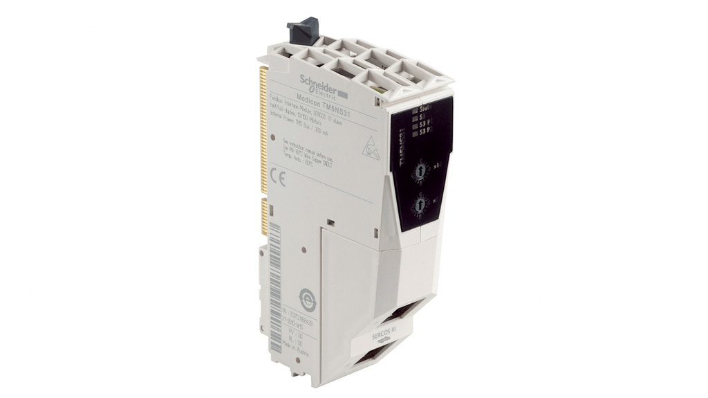 Modulo di interfaccia Schneider Electric per Controller di movimento, codice TM5NS31. Modulo di comunicazione Sercos III, compatibile con Modicon TM5. Dissipazione di potenza massima 1,75 W. Colore bianco. Tipo accessori: modulo di comunicazione per macchine complesse.