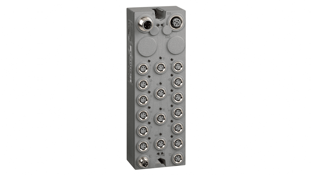 Modulo di espansione I/O discreto per controller Modicon LMC058 e Modicon M258, codice TM7BDI16B, Schneider Electric. Dotato di bus TM7, tensione nominale 24 V c.c., 16 ingressi/uscite. Contenitore in plastica, progettato per migliorare le prestazioni dei controller Modicon PAC e PLC. Compatibile con moduli I/O digitali e analogici.