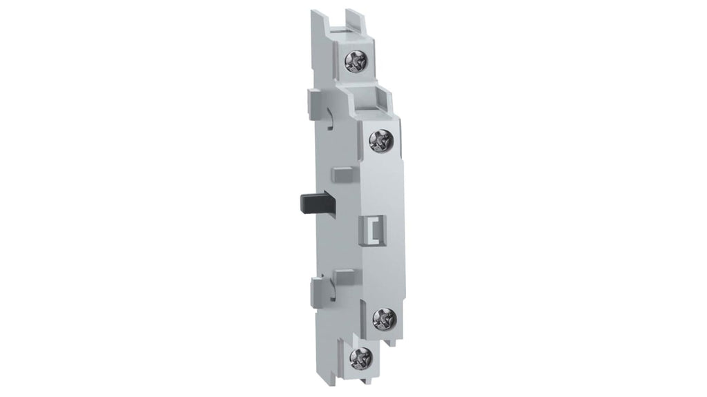 Interruttore ausiliario per sezionatori. Blocco di contatti ausiliari Schneider Electric TeSys misura 1, contatto 1 NC a interruzione anticipata, montaggio su guida DIN, colore grigio, resistenza al fuoco a 850 C, grado di protezione IP20. Compatibile con serie TeSys VLS.