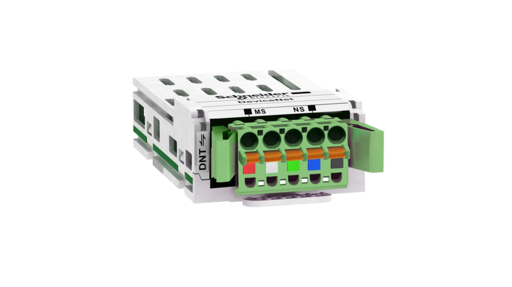 Modulo di comunicazione Schneider Electric per azionamenti a velocità variabile. Codice costruttore VW3A3609, compatibile con unità Altivar Machine e Altivar Process. Connettore a vite rimovibile a 5 vie, senza mercurio, conforme RoHS. Consente integrazione nella rete di controllo dei processi.