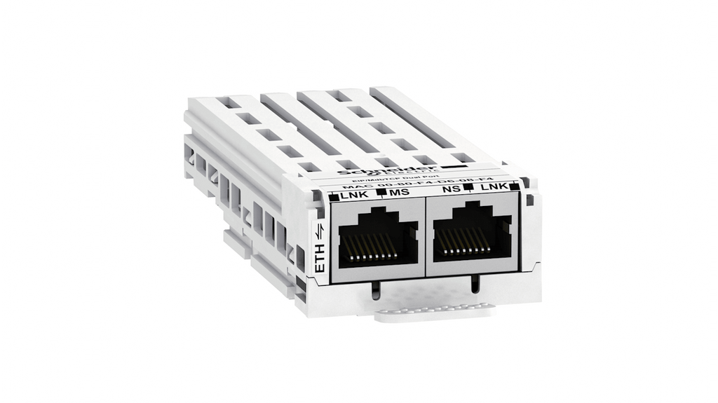 Modulo di comunicazione Schneider Electric, dotato di due collegamenti RJ45 ed ethernet-IPModbus TCP, modalità di scambio half duplex e full duplex, agente SNMP, rete di comunicazione IPv6, catena a margherita, protocollo di sincronizzazione SNTP, server web HTTP incorporato. Compatibile con Altivar Process ATV600 e Altivar Process Modular, comunicazione field bus Ethernet/IP, MD-link, Modbus TCP. Grado di protezione IP IPv6.