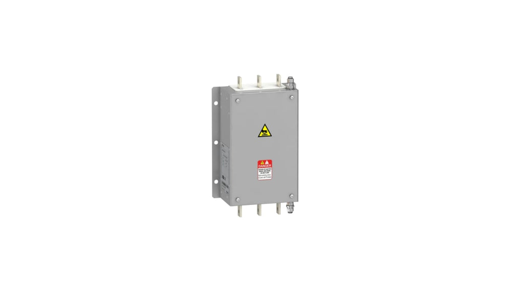 Filtro EMC trifase per Altivar Process ATV600 e ATV900, tensione di alimentazione 200-240 V e 380-480 V, grado di protezione IP00, umidità relativa 5-95% senza condensa, conforme alla norma IEC 61800-5-1, dimensioni 260 mm x 520 mm x 117 mm, serie VW3A.