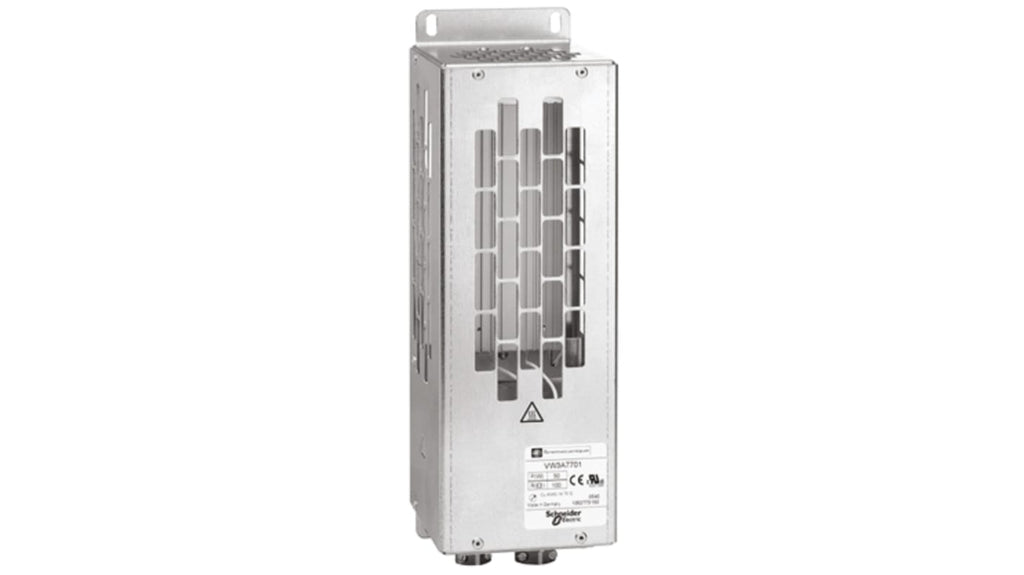 Resistenza di frenata 28 Ohm 200 W per unità Altivar, dissipazione dell'energia di frenata, massima coppia frenante per macchine a inerzia e cicli, grado di protezione IP20, montaggio esterno sul contenitore. Codice costruttore VW3A7703, marchio Schneider Electric.