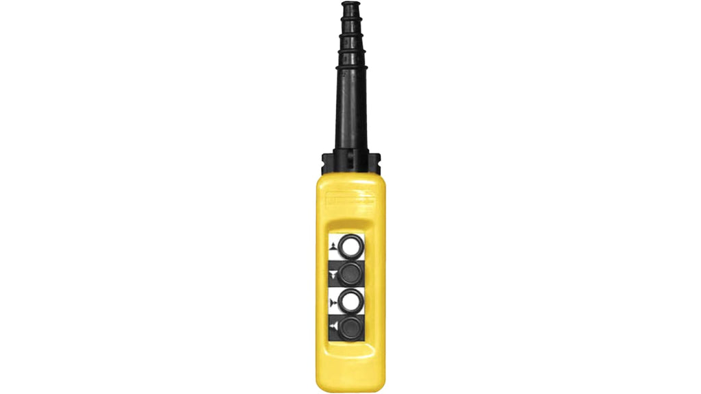 Stazione di controllo pensile con 4 pulsanti, configurazione contatto 1 NC + 2 NA, materiale del contenitore in polipropilene, grado di protezione IP65. Prodotto della serie XAC-A di Schneider Electric, codice costruttore XACA491.