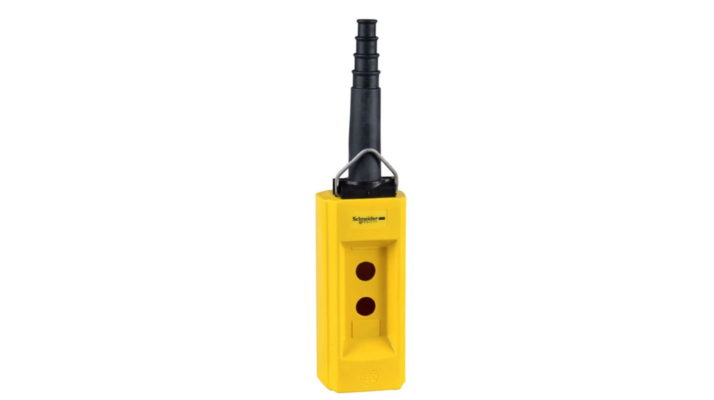 Contenitore pulsantiera Schneider Electric, 2 fori, diametro 40mm, grado di protezione IP65, materiale GRP, colore giallo, lunghezza 409mm, larghezza 98mm, temperatura operativa da -25°C a +70°C, progettato con doppio isolamento, prevalentemente standard. Codice costruttore XACB021.
