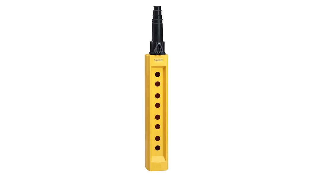 Interruttore pensile per circuiti di controllo, stazione di controllo a doppio isolamento, custodia in poliestere rinforzato con vetro, 8 aperture per personalizzazione, ingresso cavi con guaina in gomma per cavi da 22 a 35 mm, grado di protezione IP65, grado di protezione IK08, controllo motori a velocità singola e invertita a 2 velocità, durata meccanica 1000000 cicli, esente da metalli pesanti e mercurio.