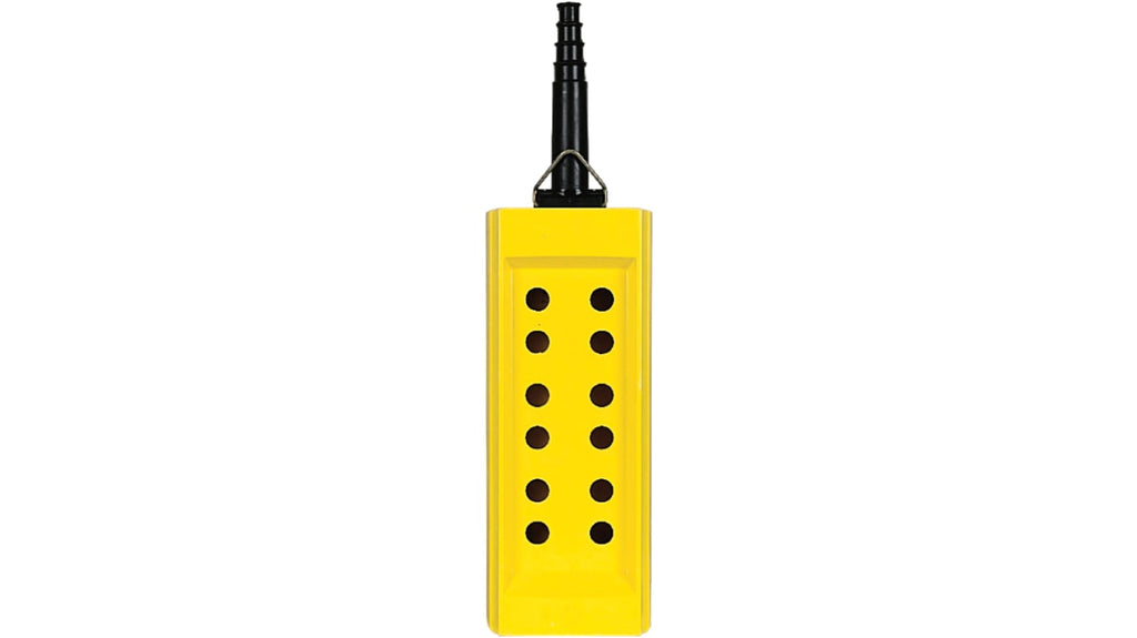 Contenitore pulsantiera Schneider Electric, 12 fori, Ø 40mm, IP65. Stazione di controllo pensile vuota serie XAC-B, colore giallo, materiale poliestere rinforzato con fibra di vetro. Grado di protezione IP65, lunghezza 679mm, larghezza 98mm, temperatura operativa da -25°C a +70°C. Codice costruttore XACB121.