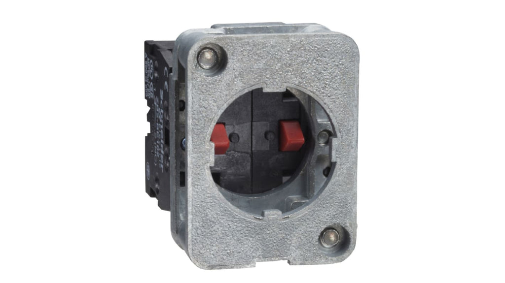 Blocco contatti con ritorno a molla, 1 N/C, tensione nominale 230V, montaggio anteriore, protezione contro il contatto accidentale, materiale in policarbonato, terminali a morsetto a vite, serie XACS.