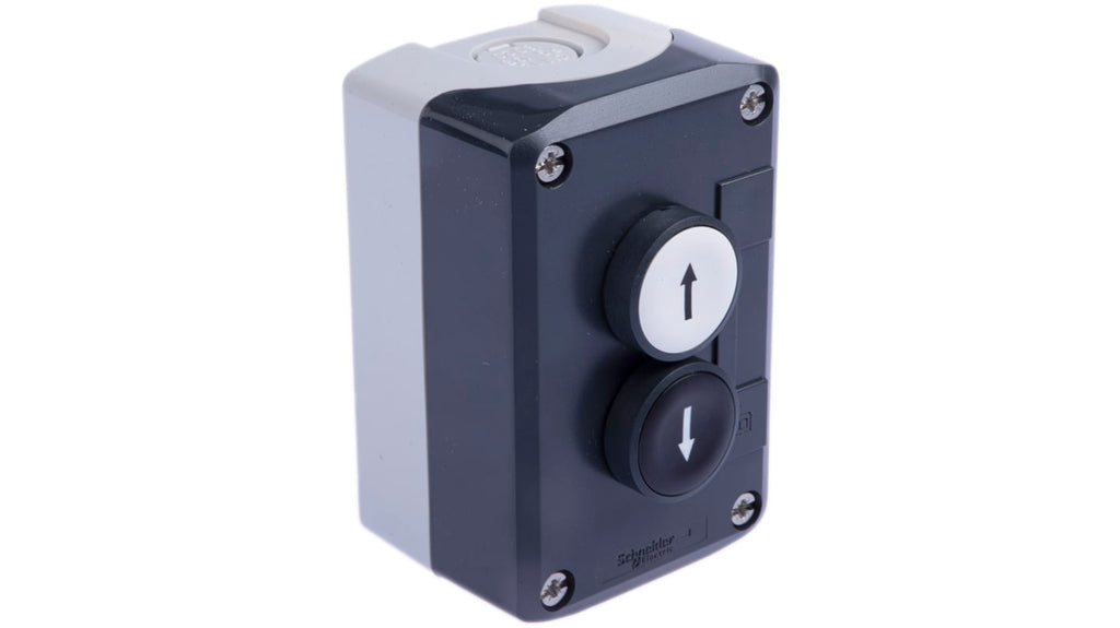 Pulsantiera a due o tre pulsanti Schneider Electric, serie Harmony XALD, corrente massima 10A, tensione nominale 600V, protezione IP66, IP67, IP69K, materiale policarbonato, dimensioni 74mm x 68mm x 62mm, temperatura operativa da -25°C a +70°C, resistenza a vibrazioni 5gn, attuazione a pulsante con ritorno a molla, diametro foro 22mm, colore pulsante nero/bianco, fusibile a cartuccia gG incluso.