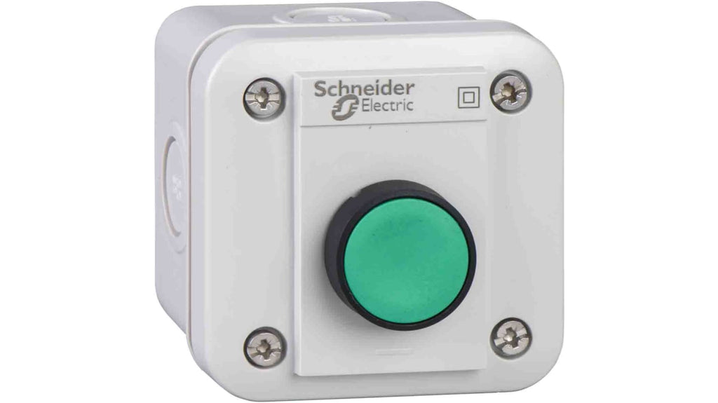 Stazione di controllo vuota, 1 foro, diametro 22mm, colore grigio chiaro, materiale ABS, serie XAL, prodotto Green Premium, privo di mercurio, garanzia 18 mesi. Compatibile con pulsante sporgente con ritorno a molla.