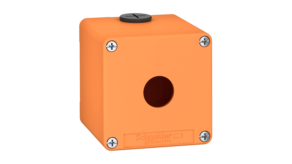Stazione di controllo vuota Harmony Schneider Electric, filettatura M20 x 1,5, 1 foro da 22 mm, materiale in lega di zinco, colore arancione, dimensioni 80 x 80 x 77 mm, grado di protezione IP65.