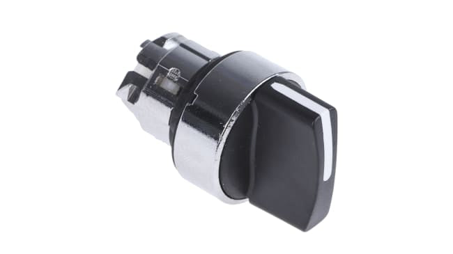 Selettore a 2 posizioni Schneider Electric, diametro foro 22mm, angolo di corsa 90°, configurazione contatto SPST, attivazione con ritorno a molla, grado di protezione IP69K, morsetti a vite di sicurezza, durata utile di un milione di cicli, illuminato, tensione massima 24V c.a. e 24V c.c., serie Harmony XB4. Unità completa per installazione semplice.