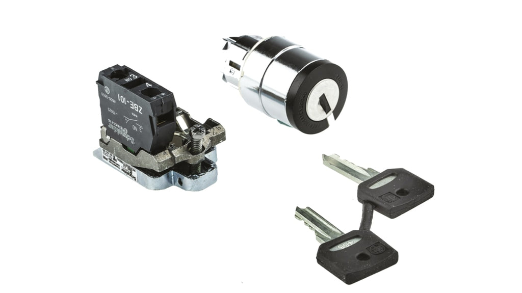 Interruttore a chiave a 2 posizioni, 1 N/A, protezione IP65, diametro di montaggio 22 mm, angolo di rotazione 90 gradi, materiale contatto lega d'argento, tensione nominale c.c. 600V, tensione nominale c.a. 600V, temperatura operativa da -20 a +60 gradi, durabilità meccanica 3000000 cicli, conforme a IEC 60536, NEMA 13, NEMA 4X, IK06, certificato EX.