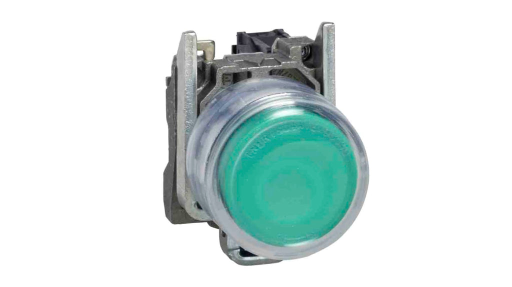 Pulsante illuminato per atmosfere esplosive, testa circolare, diametro foratura pannello 22 mm, colore verde, configurazione contatto SPST, 1 contatto a interruzione lenta NA, tipo di collegamento a vite, serie Harmony XB4, codice produttore XB4BP383B5EX, privo di mercurio, dotato di LED integrato, spinta a filo in silicio trasparente.